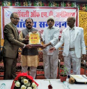 असेंबली आफ एमपी जर्नलिस्ट्स के प्रांतीय सम्मेलन में देवर्षि नारद सम्मान से सम्मानित हुए श्री श्याम चतुर्वेदी और उनके द्वारा लिखित पुस्तक का विमोचन किया गया आज के अथिति श्री भगवानदास सबनानी जी विधायक, भोपाल, श्री आशीष अग्रवाल जी प्रदेश मीडिया प्रभारी भारतीय जनता पार्टी, श्री रमेश शर्मा वरिष्ठ पत्रकार एवं विचारक,