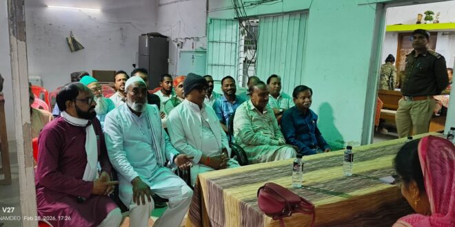 बैठक में त्यौहारों के दौरान कानून-व्यवस्था बनाए रखने, जुलूस मार्ग, यातायात प्रबंधन, साफ-सफाई, पेयजल व्यवस्था, स्वास्थ्य सुविधाएं एवं आपातकालीन सेवाओं की उपलब्धता जैसे महत्वपूर्ण विषयों पर विस्तार से चर्चा की गई। प्रशासन ने स्पष्ट किया कि त्यौहार आपसी भाईचारे और सौहार्द का प्रतीक हैं, इसलिए सभी नागरिकों का सहयोग आवश्यक है। बैठक के अंत में सभी धर्मों एवं समुदायों के प्रतिनिधियों ने आपसी समन्वय के साथ त्यौहार मनाने का संकल्प लिया और प्रशासन को पूर्ण सहयोग का भरोसा दिलाया। इस अवसर पर तहसीलदार श्री हीरालाल धुर्वे, नगर पालिका उपाध्यक्ष संजू लता वैष्णव, सीएमओ एलएस सारस, स्वास्थ्य विभाग डॉ. बलराज भदोरिया तथा थाना प्रभारी श्री बलदेव सिंह मुजाल्दा सहित नगर के गणमान्य नागरिक एवं शांति समिति के सदस्य उपस्थित रहे।